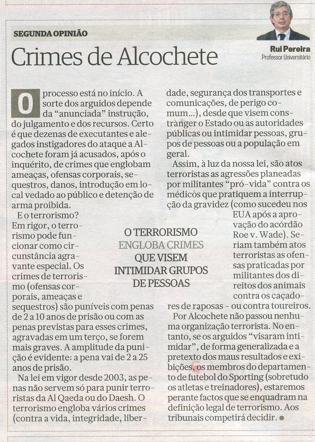 O ex-Ministro PS da Administração Interna (entrou para substituir António Costa), e ex-Juiz do Tribunal Constitucional, Rui Pereira tinha opinado sobre o terrorismo sportinguista.