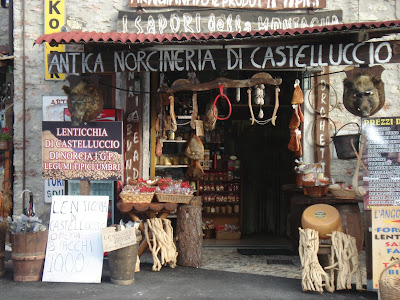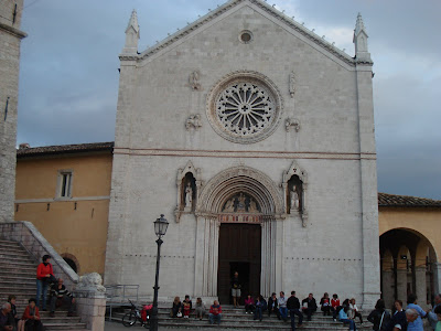 De facto Castel Lúccio é a terra natal de São Bento de Núrsia, e aqui está a Basílica onde foi hoje à missa o signor Giovani rezar para que nenhum analfabeto lhe construa um cubo pornográfico de 40 metros de altura ao lado da preciosa basílica românica (com uma rosácea já a dar para o gótico) lá da cittá..